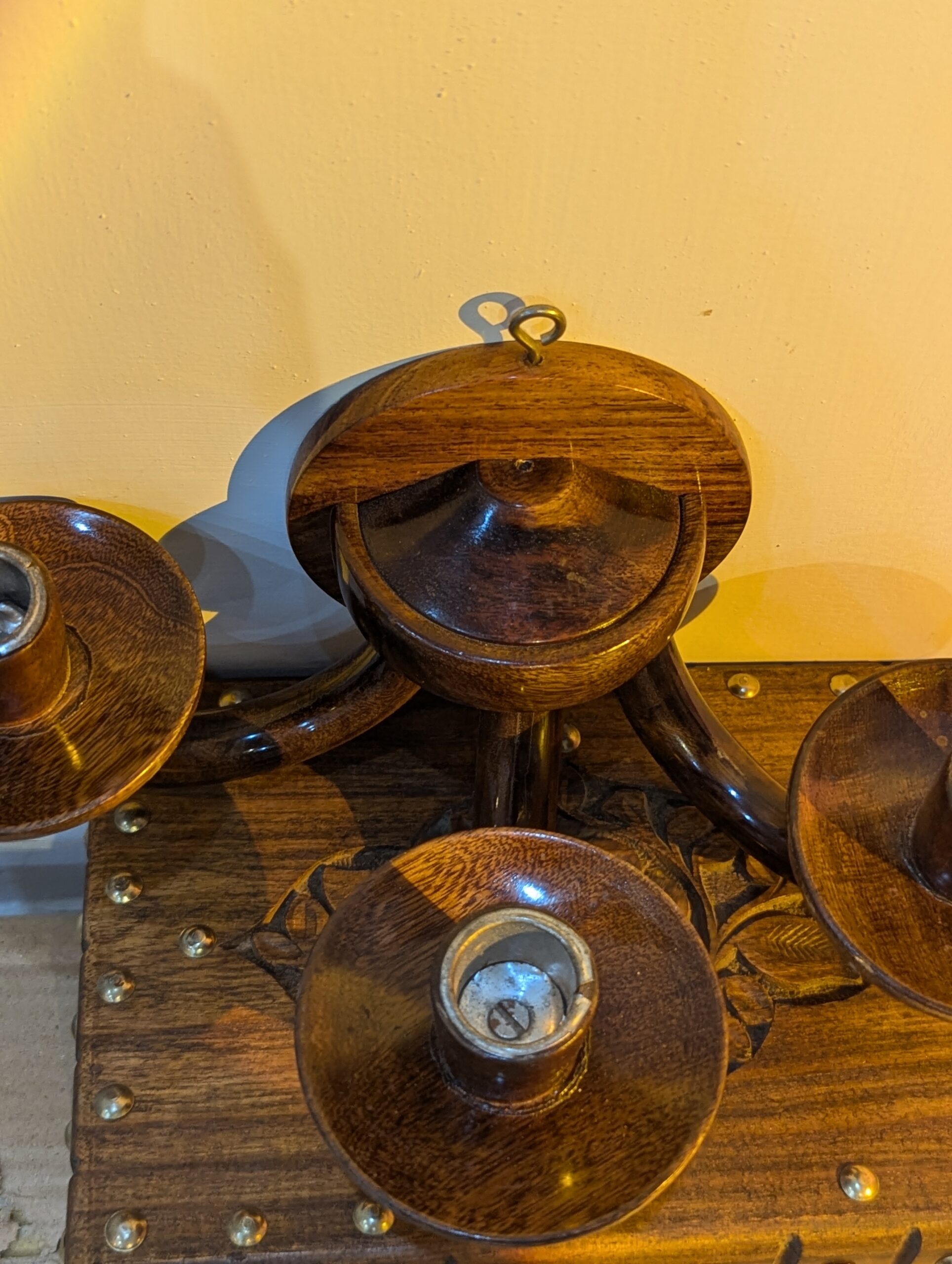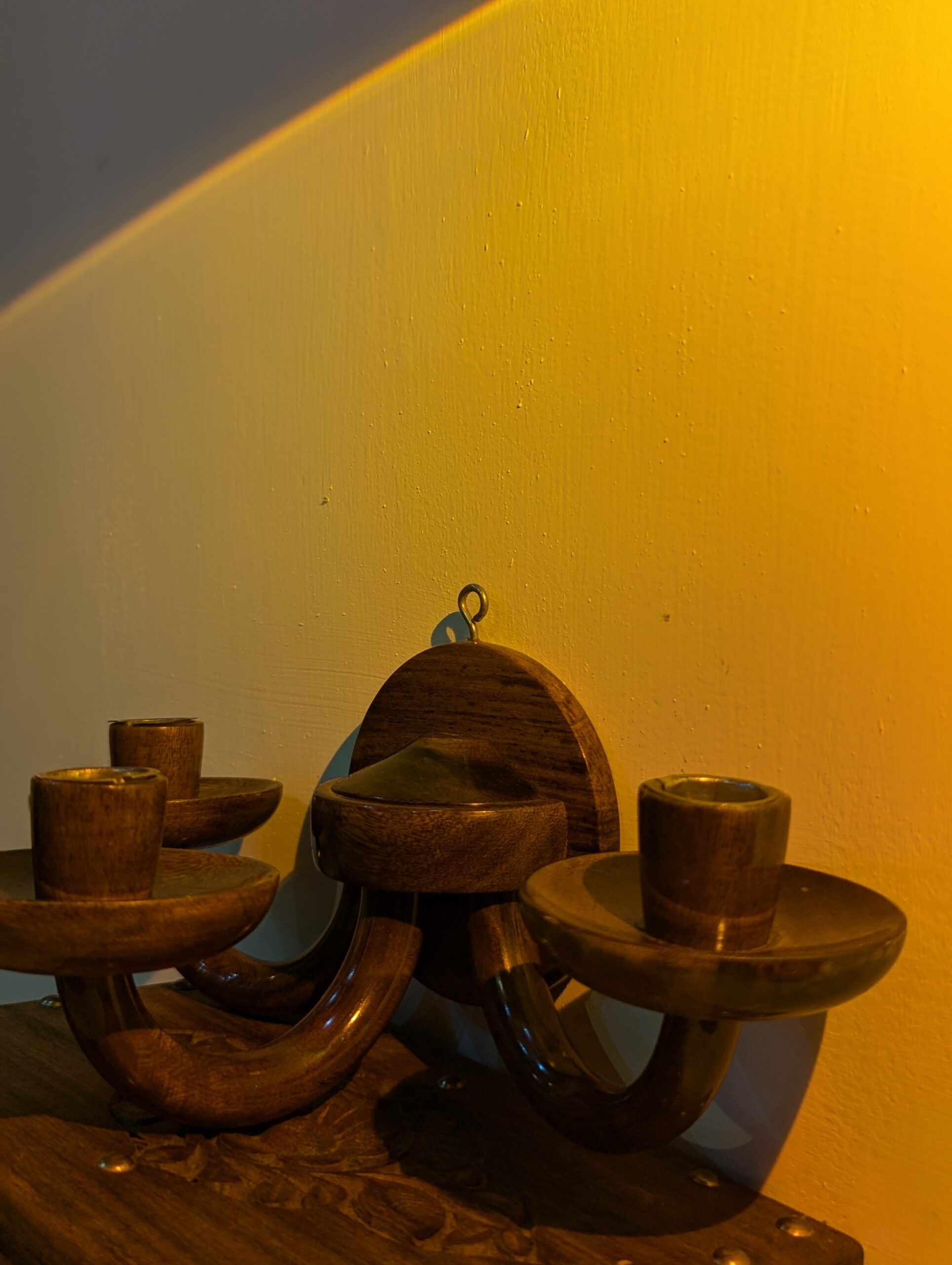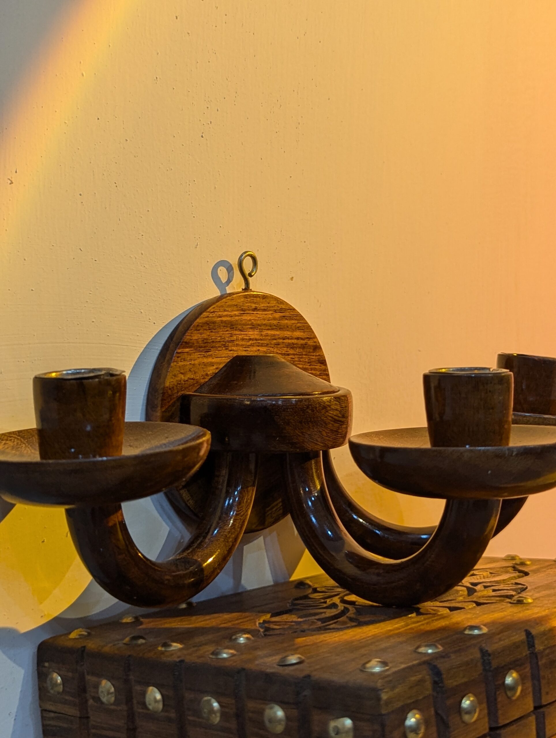 Handmade Wooden Wall Hanging Candle Holder – 3 Arm Rustic Sconce